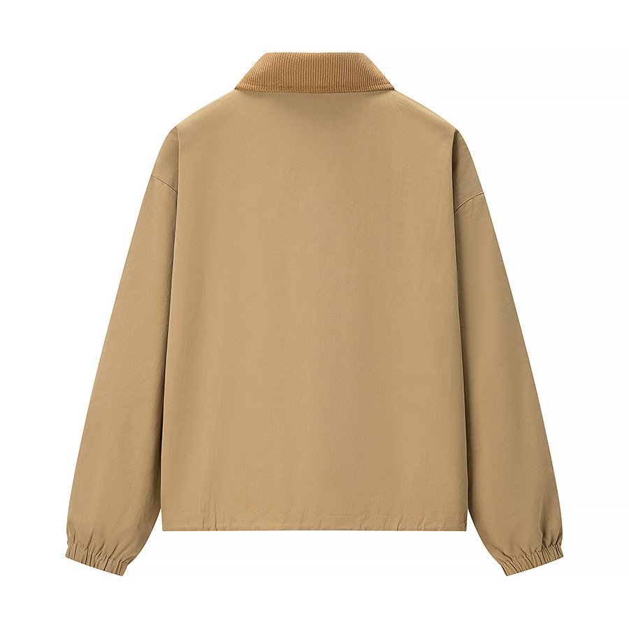 Elevate your casual wardrobe with the Corduroy-Collar Utility Jacket—where rugged functionality meets refined street-style. Available in warm khaki and deep olive, this jacket is crafted from durable cotton-blend fabric with a subtle sheen, offering wind-resistant comfort and a structured yet relaxed silhouette. The standout corduroy collar in rich brown adds tactile contrast and vintage appeal, instantly grounding the look in classic workwear heritage.